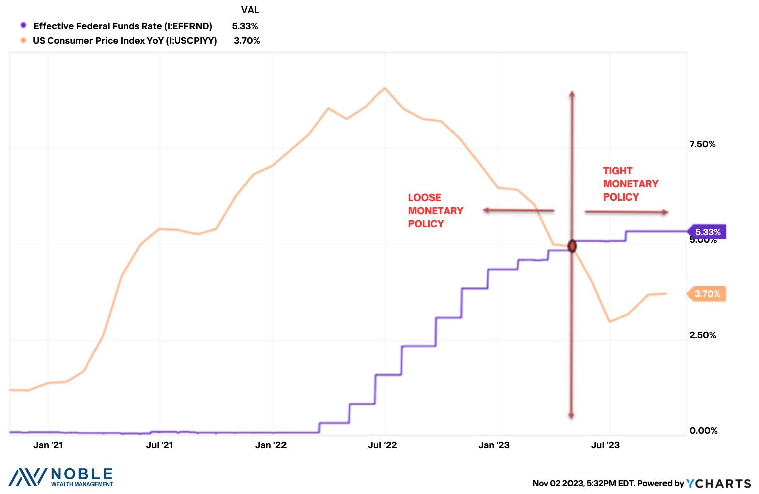 The Fed meeting on November 1st was boring, which is a good thing. They are in ‘wait and see’ mode now with policy. They made a significant move in a short period of time and are now waiting to see the impact on the economy.